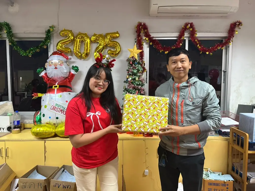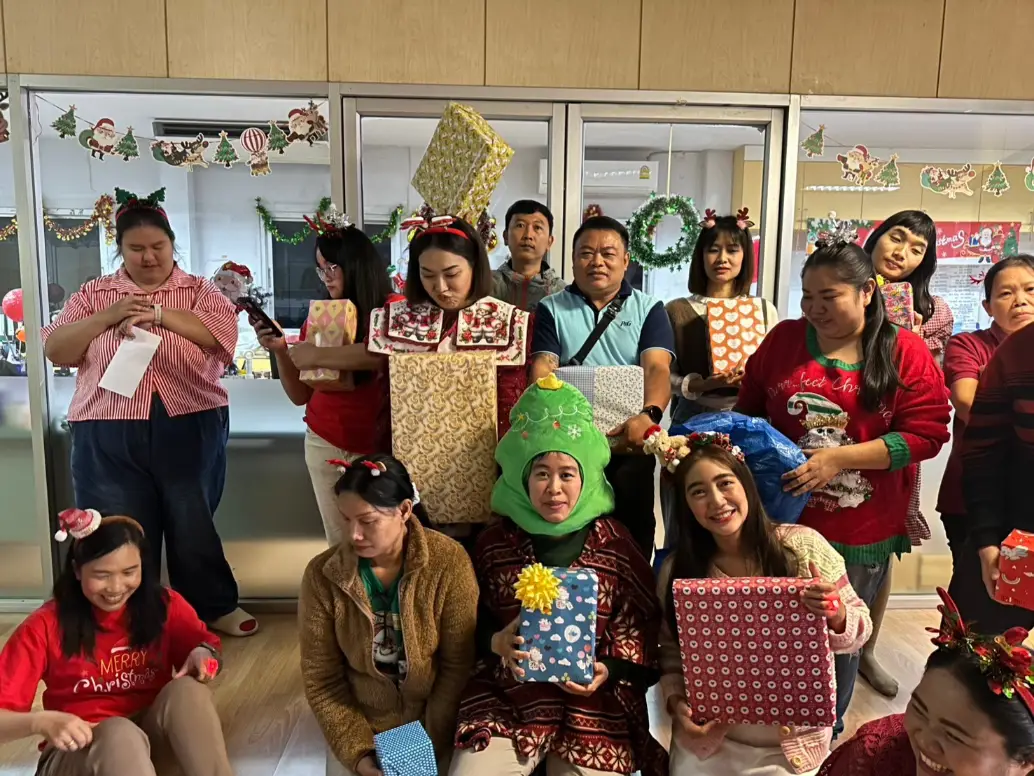 🎄✨ บรรยากาศอบอุ่นในงานแลกของขวัญคริสต์มาสของบริษัท! ✨🎁